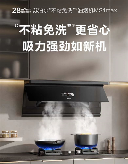 中式烹饪里,爆炒所产生的油烟量极大,对油烟机的瞬间吸力以及排烟效率都设置了极为严苛的标准。苏泊尔“不粘免洗”油烟机S1max凭借超强性能与智能调节的组合拳,打造“油烟不沾脸”的洁净烹饪空间。