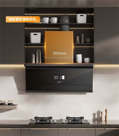 传统油烟机的主机通常较宽,换装时往往需要切割橱柜,费钱又影响美观。S1max顶部主机厚度仅365mm,适配市面上所有标准橱柜尺寸。不管是老式的中式橱柜,还是现代简约风格的柜体,都能实现无缝安装,无需对橱柜进行切割改造,大幅降低了换装成本和施工难度。同时,S1max还最大程度减少对吊柜空间的占用,充分释放吊柜储物容量,让厨房收纳更加游刃有余。