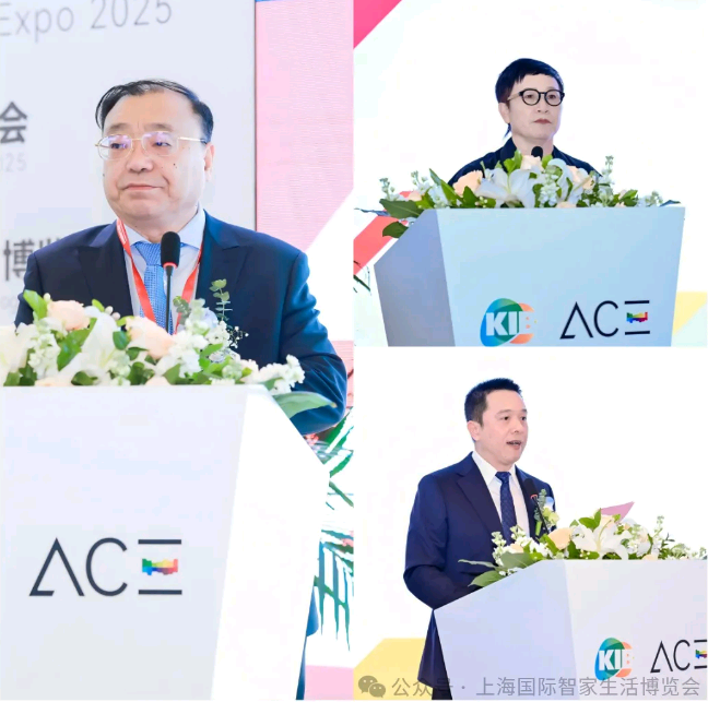 张崇和会长宣布2025上海国际智家生活博览会开幕,张东立、张丽、彭健锋为开幕式致辞。