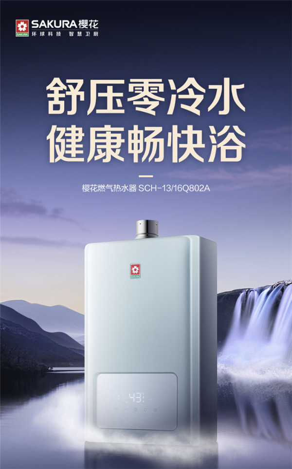 樱花燃气热水器Q802A以精准的恒温和宜人的水流,让家居生活井然有序,在生活每一刻都传递出对质感生活的追求和坚持。