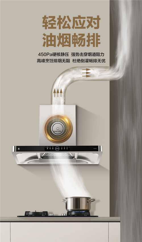 面对复杂排烟环境,樱花吸油烟机T302A搭载450Pa强大静压,轻松化解油烟倒灌的困扰。更以创新科技带来清洁难题的革新,樱花吸油烟机T302A搭载电热熔油自清洁系统,通过高温溶解与自动冲洗实现热熔自净,彻底清除油污积垢,免拆洗不沾手,让厨居空间干净澄澈。