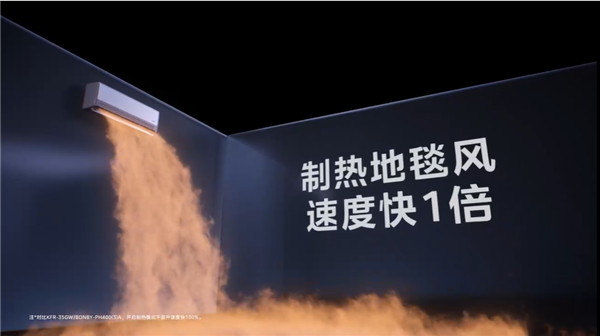 那么,美的究竟如何将“制热强”这一核心卖点,转化为用户可感知的极致体验?首先,在“暖得快”的维度上,产品通过硬件重构实现高效制热与均匀控温。它搭载行业最大的970cm²双风口设计,配合820m³/h超大循环风量,开机即可输出强劲气流,制热速度较普通空调提升一倍,能迅速驱散室内寒冷;配合左右超115°超广角送风,气流轻松覆盖房间角落,全屋温差≤1℃,彻底告别“局部热、外围凉”的尴尬。