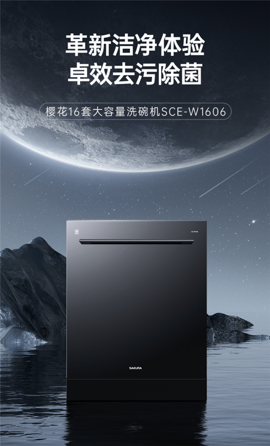 樱花洗碗机W1606以全域净洗的全新体验,让厨房回归整洁有序,让每餐都更安心、更健康。