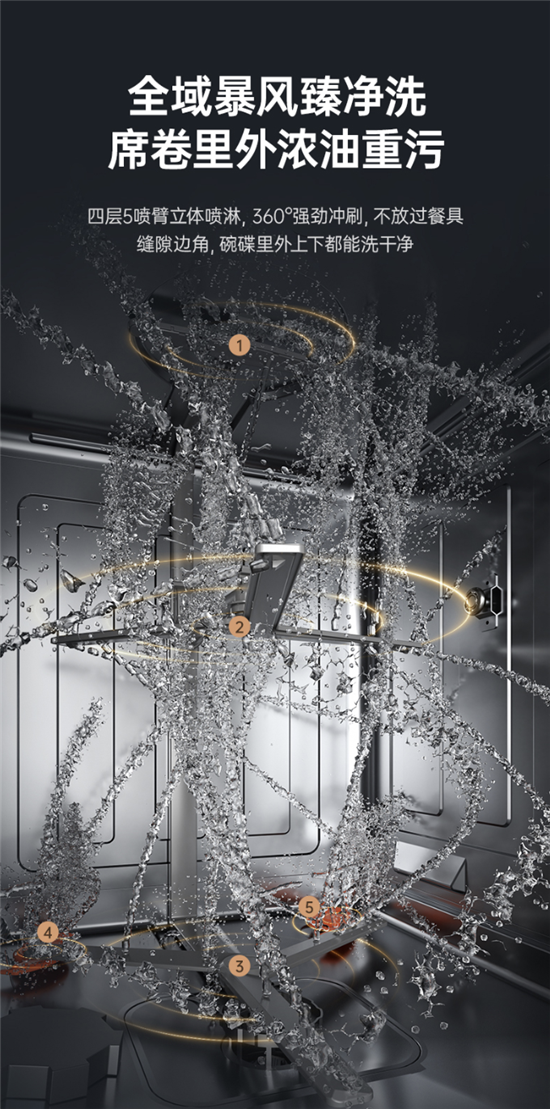 当美餐过后,凌乱的锅碗瓢盆,则成为餐后的一大烦恼。樱花洗碗机W1606从健康与效率出发,搭载四层五喷臂立体喷淋系统,360度强劲冲刷,无论碗盘缝隙还是餐具边角,都能直达并彻底清除油污。进水口位置还内置了银离子装置,可全水域杀菌,真正呵护全家的餐饮健康。75℃高温软水漂洗,亦可快速分解顽固污渍,有效抑制水垢生成,让餐具晶莹透亮且卫生。