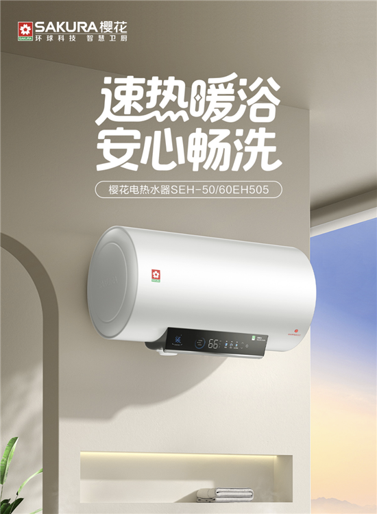樱花电热水器EH505以细腻温柔的全方位守护,让热水随心而至,让温暖浸润进生活的每一刻。