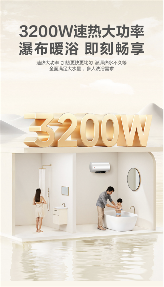 让每一次开启都是一场畅快的温暖与舒适的体验,樱花电热水器EH505搭载高精度智能水流传感器,高达3200W速热大功率,让热水瞬时充盈全家,澎湃的大水量,全面满足多人的洗浴需求,让暖意随时流淌。高达80%的热水输出率,超国家一级能效标准,既节能又省电。3D聚热保温层全方位锁温,72小时恒温守护,让温暖延续每一刻,让身心在持久的温润中自然放松。