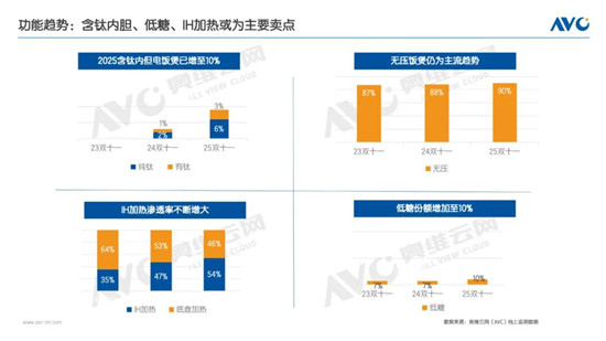 整体规模在结构调整中迈向高质量增长,消费升级驱动需求向优而行。奥维云网(AVC)线上监测数据显示,2025年双十一期间,电饭煲市场呈现出“量额齐降”但“均价上涨”的鲜明特点。零售额为8.8亿元,同比下滑14.6%,零售量达261.4万台,同比大幅下滑24.1%。这背后主要受到两大因素影响:一方面,产品与消费升级直接推动了均价上涨12.5%,达到337元,说明消费者更倾向于购买高端产品,导致销量降幅大于销售额;另一方面,作为生活刚需品,电饭煲的消费日益趋于常态化,消费者多秉持“即想即买”的原则,而非将需求积压至大促节点集中释放,从而稀释了双十一期间的购买力,共同导致整体市场的量额双降。