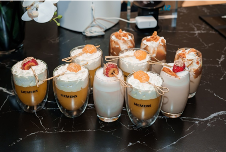 本次私享会还设置了节日饮品品鉴活动。参与者可在等待手作香氛定型的间隙,体验由西门子嵌入式咖啡机与西门子嵌饮机共同制作的多款节日特调饮品,包括圣诞季的热可可、太妃榛果拿铁,以及新年限定的“福禄当头”和“吉星高照”等节日特调。两个专业饮品设备的协同操作展示了西门子智能精控温度、专业强劲的萃取模式与一键制作专业特调的功能,轻松复刻饮品店网红饮品,让消费者在轻松氛围中直观感受厨房智能化的便捷体验。