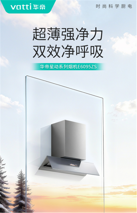 而要将这一政策机遇转化为千家万户触手可及的品质生活,离不开领军品牌的切实行动。对此,华帝早已做好充分准备,其早在数年前便启动“三化转型”(高端化、年轻化、智能化),构建了完整的产品矩阵。华帝快拢吸超薄烟机E6095ZS等产品,不仅完全符合一级能效标准,更在超薄设计、智能交互等方面均实现突破,与2026年国补重点支持的“智能型产品”导向高度契合。此外,华帝还持续推进门店智慧化改造和全渠道布局,确保消费者无论在哪个地区,都能享受到贴合政策、品质卓越的厨电产品。