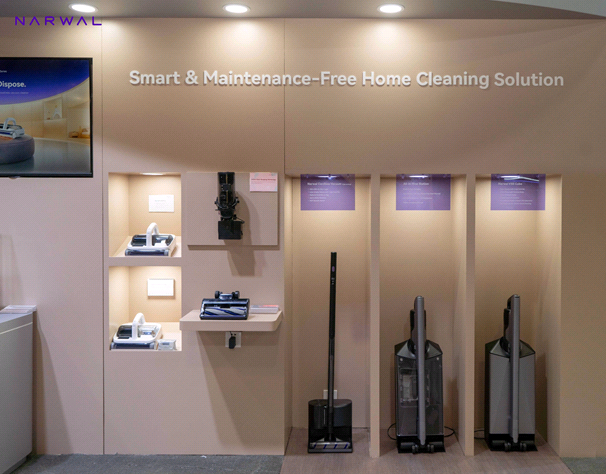 从手持品类来看,Narwal S30系列及上下水洗地机新品在内的三款洗地机集中亮相本届CES。其中,上下水洗地机新品是高端旗舰机型,搭载80℃恒温热活水洗地系统,能高效溶解地面顽污。同时,支持180°躺平以清洁低矮空间,且可连续工作70分钟,达到约500㎡的大面积清洁。在自清洁方面,新品拥有自动上下水基站,支持自动加水和自动排污,实现“无需换水,即取即用”的极致免维护体验。吸尘器方面,云鲸发布了Narwal V50 Cube和自集尘铅笔吸尘器两款新品,前者主打210AW强劲吸力和100天免维护;后者主打小巧强劲,配备140AW吸力,支持暗处照明和360°万向转动,更好清洁边角灰尘。此外,云鲸还带来U50(有线款)和U50 Pro(无线款)两款除螨仪,进一步满足母婴人群、养宠人群、易敏人群的精细化清洁需求。
