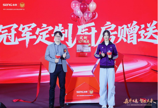 会上,森歌智能厨电总经理范佳辰先生向邵雨琪送上了一份特殊的礼物——“定制冠军厨房”。范佳辰表示,这不仅是向冠军致敬,更是森歌以“冠军标准”打造产品、守护万千家庭健康生活的郑重承诺。邵雨琪也回赠了亲笔签名的冠军战靴与清华校服,寓意将不断跃升、踏实深耕的精神传递给森歌。这场双向奔赴的赠礼,是品牌与冠军精神契合的生动注脚。