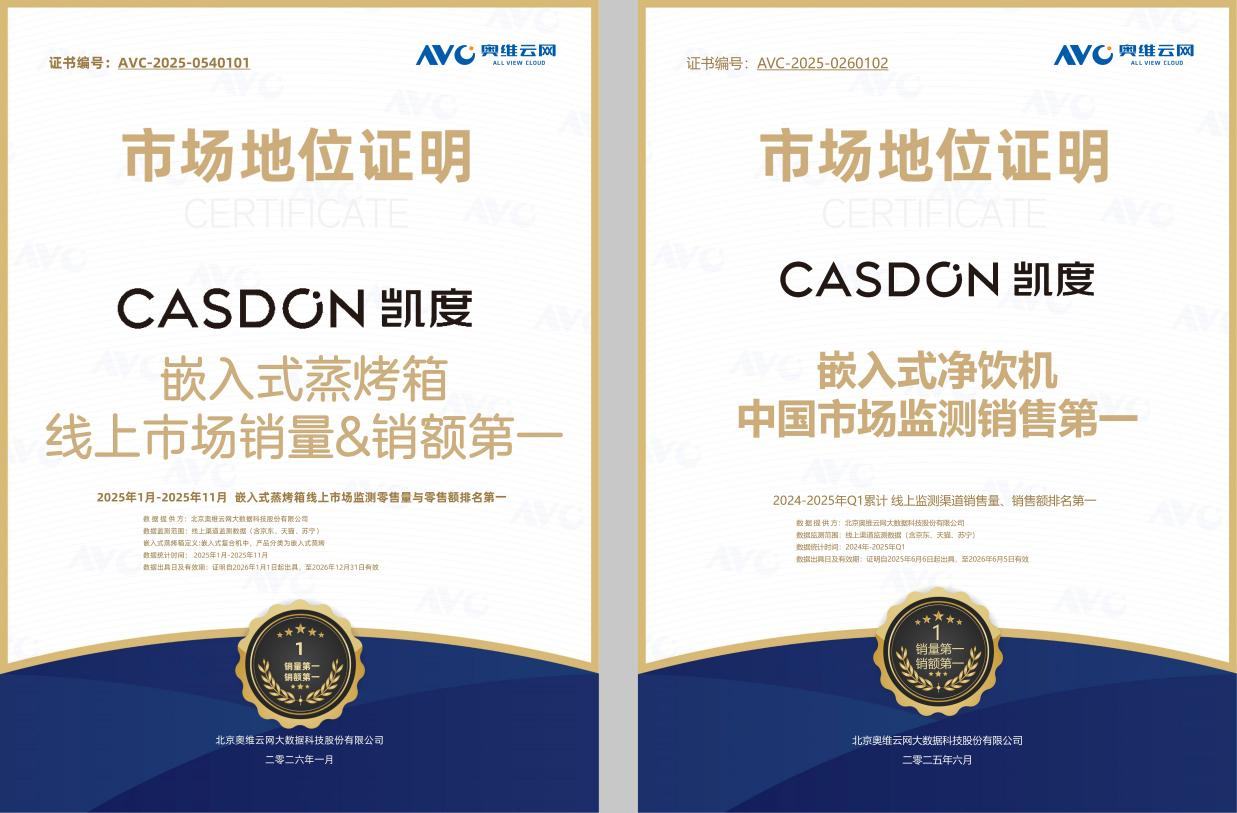 奥维云网监测数据显示,2025 年 1-11 月,凯度嵌入式蒸烤箱线上零售量、零售额双双登顶,成为细分市场无可争议的领跑者。而技术积累的溢出效应,让凯度在拓展新品类时具备天然优势:针对用户 “饮水安全 + 便捷性” 双重痛点,凯度嵌入式净饮机凭借核心过滤技术,拿下 2024-2025 年 Q1 线上渠道销量、销售额双第一,解决了传统净饮机 “滤芯更换麻烦、水质不可控” 的行业通病。