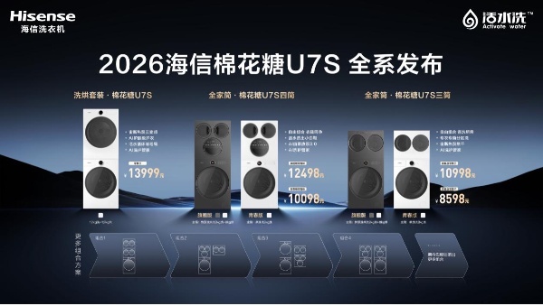 26款海信全家筒的珍贵之处,不在于堆砌硬件与技术,而在于通过极致的工程创新,把被琐碎家务偷走的时间,完整归还给用户。海信洗衣机始终致力于通过技术创新,帮助用户跳出家务繁琐,让生活拥有更多选择权。发布会上,海信推出棉花糖U7S全系产品——海信洗烘套装·棉花糖U7S、海信全家筒·棉花糖U7S四筒、海信全家筒·棉花糖U7S三筒,这是海信对家庭洗护边界的又一次重新定义,也是海信 “当科技让你不再妥协,生活才真正有了选择权” 理念的又一次落地。