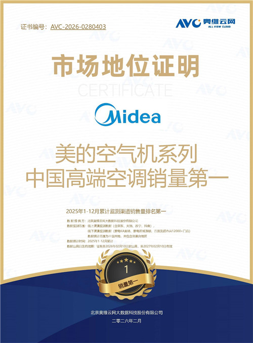 日前,美的空调还获得奥维云网认证,美的空气机系列获得2025年1-12中国高端空调销售第一、美的中央空调获得中国中央空调市场监测销售第一。此外,美的空调已连续两年获得空调销量全球第一。