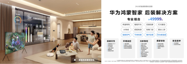 让主动智能体验走进千家万户,离不开丰富的产品矩阵与解决方案。鸿蒙智联生态汇聚合作品牌3200余家,覆盖品类400余种,丰富生态产品在华为智慧生活APP中可查可购,为消费者带来种类丰富、方便购买、物有所值的智能家居产品。针对旧房改造人群需求,华为鸿蒙智家推出了后装解决方案三档套餐,包括9999元尝鲜组合、25999元标准组合、49999元专业组合,覆盖全屋智能基础需求和进阶体验。同时提供智能温控组合、厨房安全组合、智能窗帘组合等局部入门套装,百元级价格即可实现局部改造,大幅降低体验门槛,让智能生活从一个场景轻松开启。