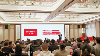 会议最后,董事长对本次工商洽谈会作总结发言。他表示,面向2026年,丽博将重点推动七大经营策略:鼓励终端开展形象焕新,打造精干高效的人才队伍,坚定推进定成一体发展路径,全面落实主动营销机制,主推差异化S级产品体系,深化与当地龙头整装公司的合作,并以“与客户交朋友”为核心理念,持续提升服务与粘性。通过多维发力,助推门店实现稳健增长,共同开拓更加广阔的发展空间。