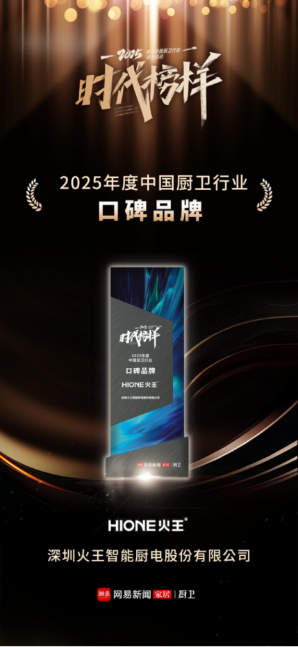 2026年1月,火王斩获2025年“全触屏智能灶全国销量第一”;