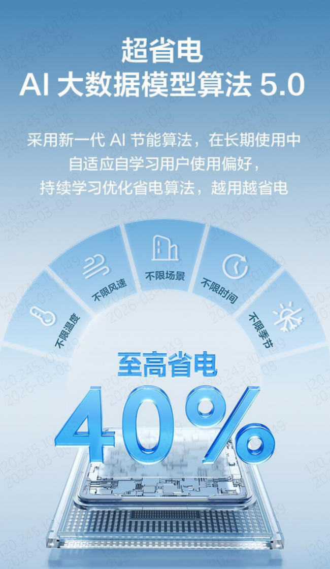 面对潮湿季节,此款空调还贴心地配备了智能除湿功能,智慧识别用户使用场景,自动匹配不同除湿模式,有效应对桑拿天、梅雨季、回南天等高湿环境,保持室内干爽宜人。
