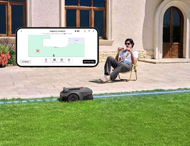传统割草机依赖埋设边界线或依赖RTK基站定位,安装复杂且难以适应地形变化。MOVA自研的UltraEyes技术则采用了无人驾驶领域的视觉同步定位与建图(Visual SLAM)技术,仅需5分钟即可完成300㎡庭院的高精度地图构建。用户无需任何施工布线,只需通过MOVAhome App一键启动,割草机器人即可自主完成环境扫描与路径规划,真正实现“开箱即用”。